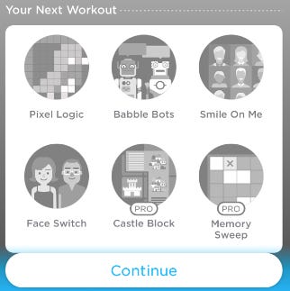As I write this, my next Peak workout is scheduled for 9 a.m., and I think I'm going to make it. After years of being so hard on myself, I think it's time that I give my brain a workout that won't lead to some test of skill or a final grade. It's served me well thus far, and even if a few memory games don't ease a magnum opus out of the depths of my cranium, that's fine. I'll be just as happy if I can better remember whether or not I actually blew out my candles before I left my apartment.